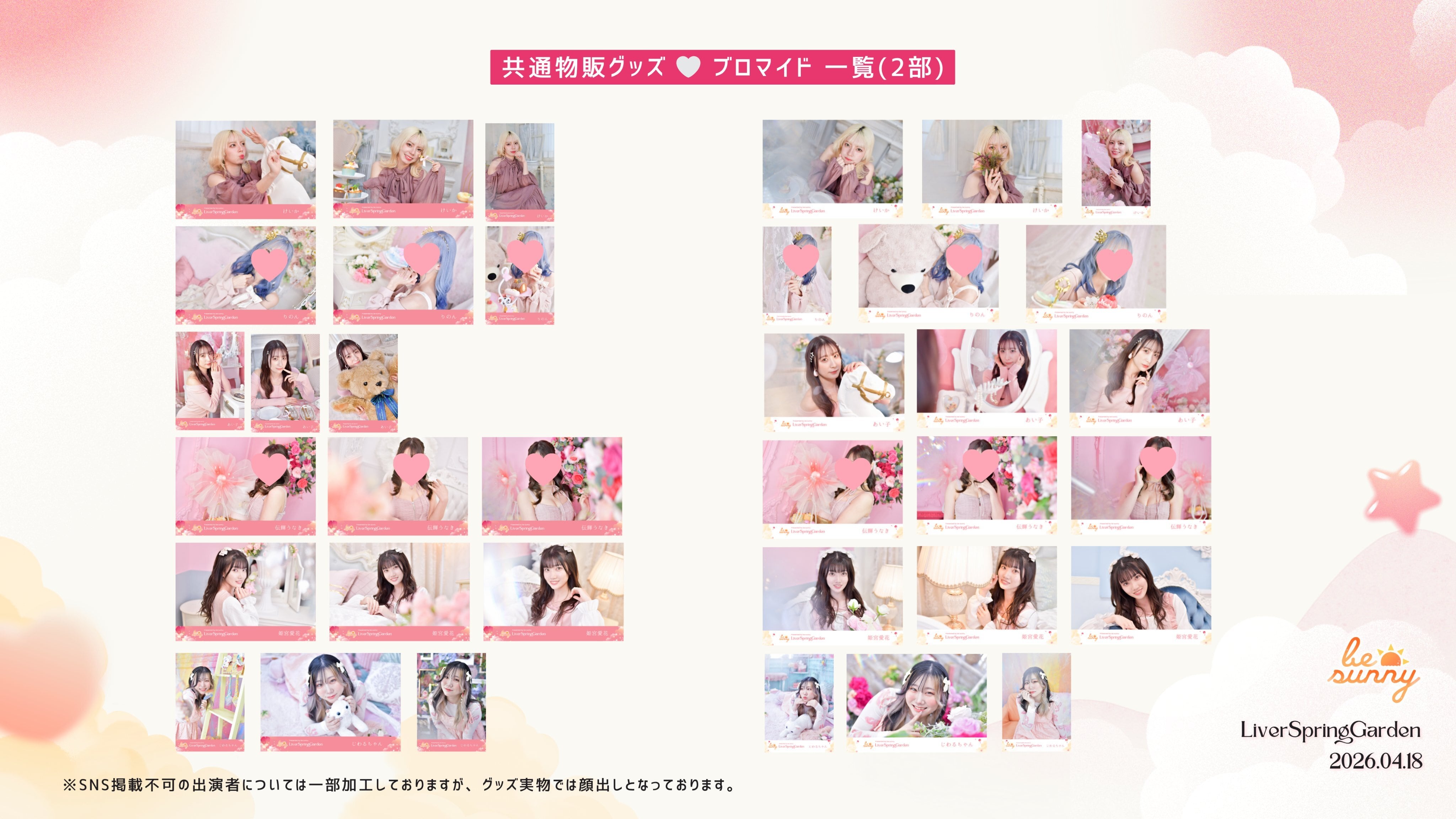 各ライバー白帯・ピンク帯、2種の販売、それぞれ厳選した3カットが入っています。